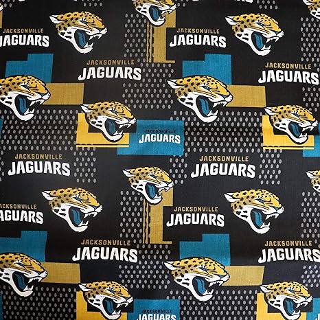 Amazon Com Traditions Nfl Cotton Broadcloth Jacksonville Jaguars Gold Black Aqua Fabric By The Yard