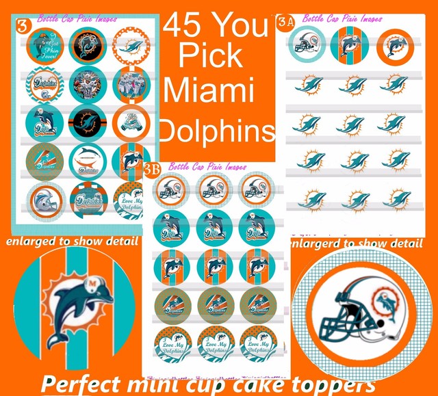 Miami Dolphins Nfl Football Team Fancy Bow Logos 45 Precut Bottle Caps Images Ebay