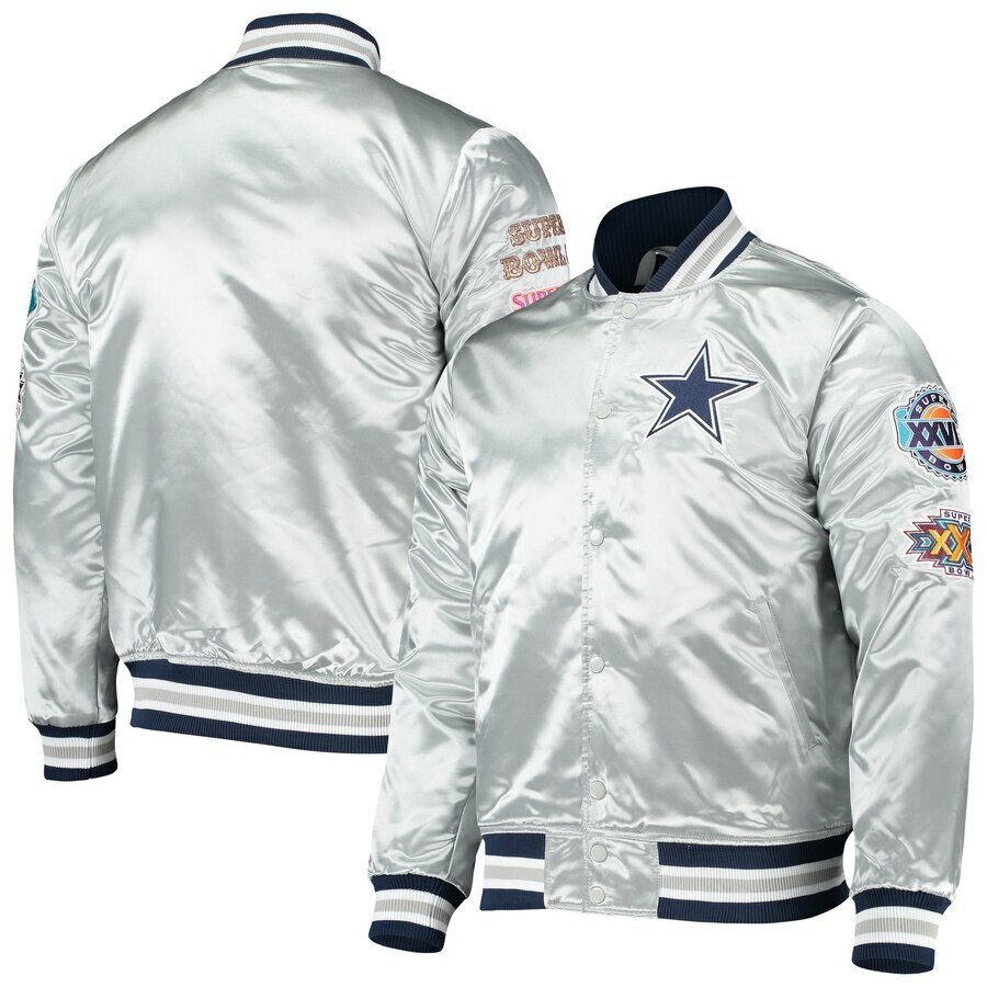 Authentic Dallas Cowboys Mitchell Ness Nfl Tough Seasons Silver Satin Jacket Ebay