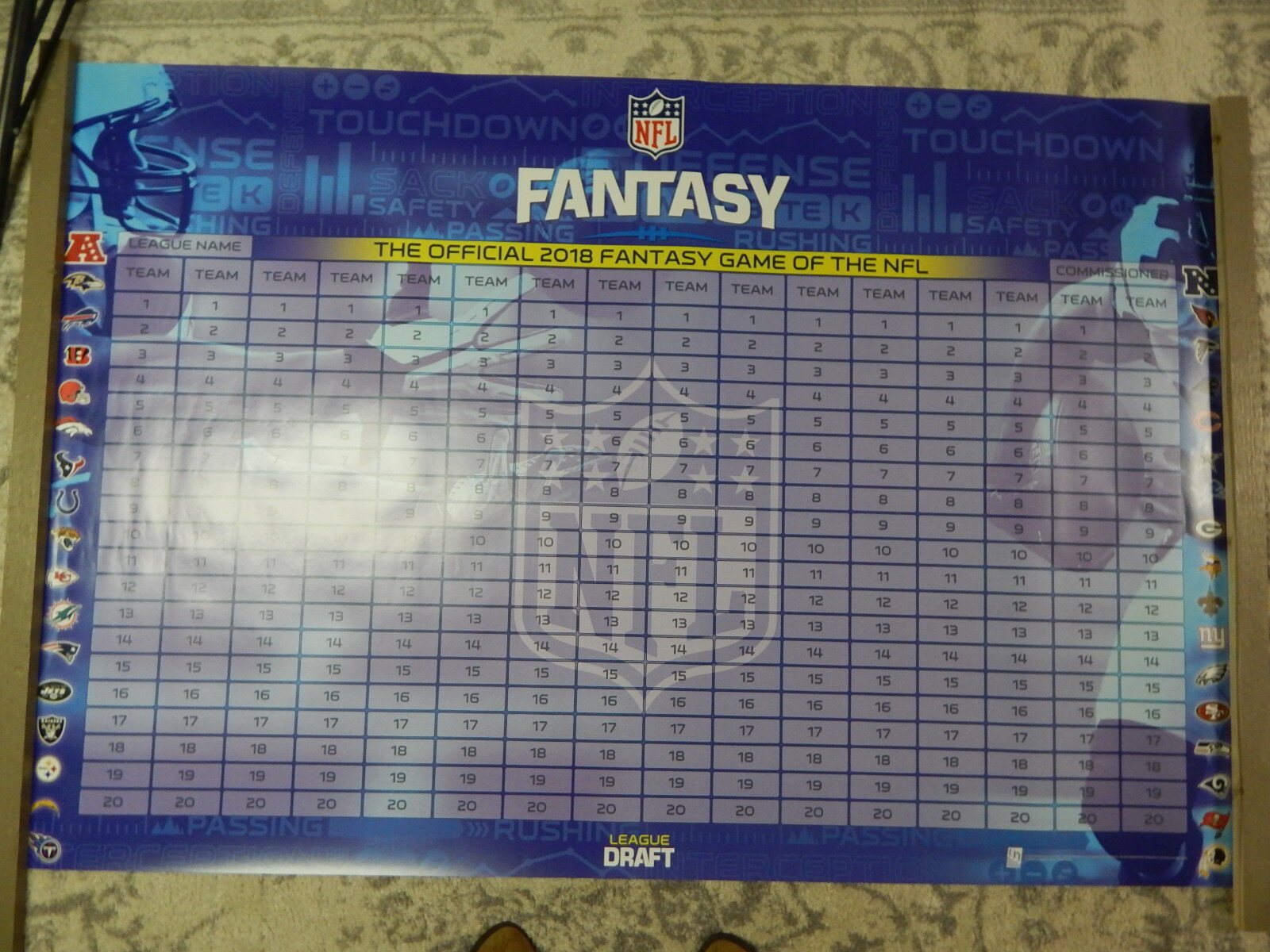Amazon Com Zieglerworld Reusable Fantasy Football Draft Board Chart Kit Holds Up To 12 Teams 22 Rounds Marker Clothing