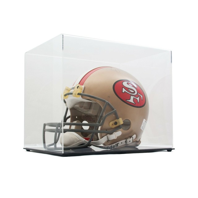 Amazon Com Helmet Display Case Football Helmet Acrylic Case Full Size Helmet Case Black Acrylic Base Gold Risers Mirror P368 Sports Outdoors