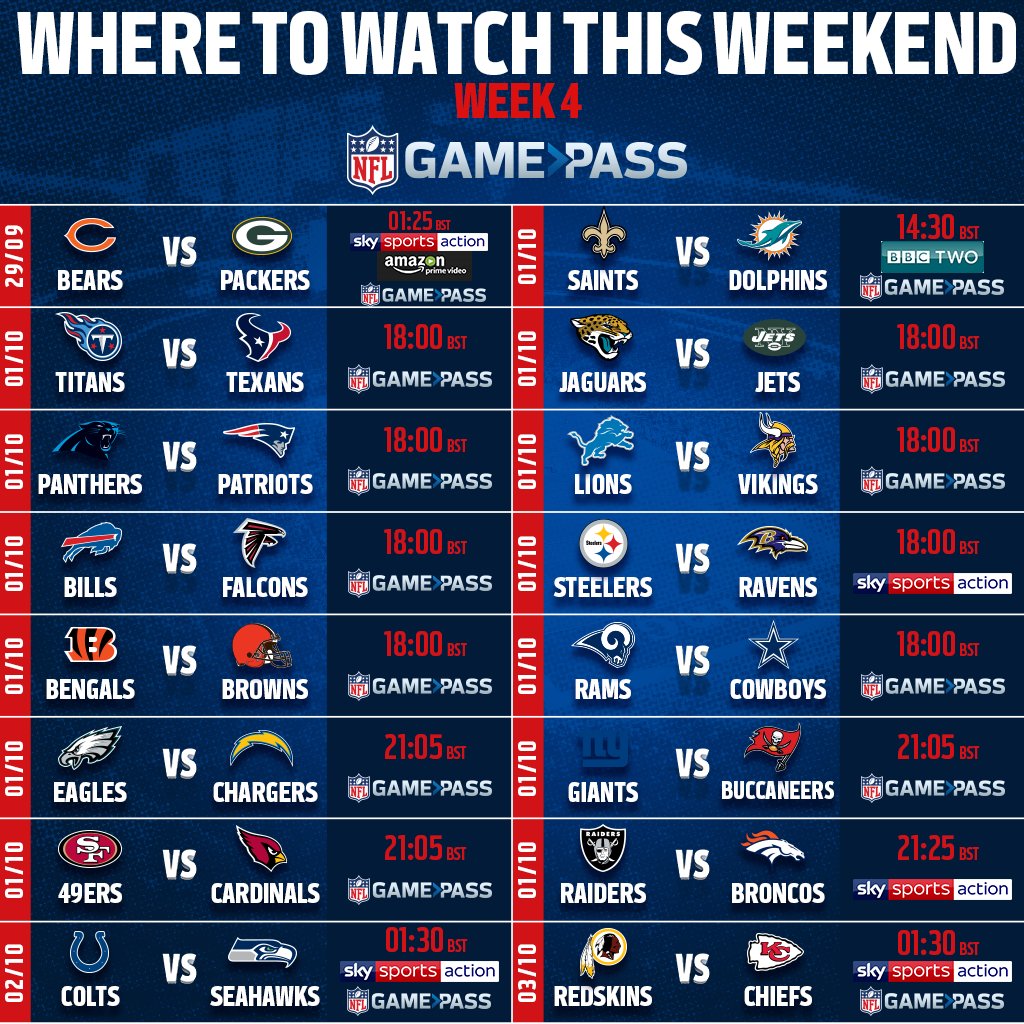 Nfl Uk On Twitter Who S Ready For Week 4 Find Out Where You Can Watch Your Favourite Team Game Pass Free Trial Https T Co Aulxpywbko Https T Co Sndt14xi1i