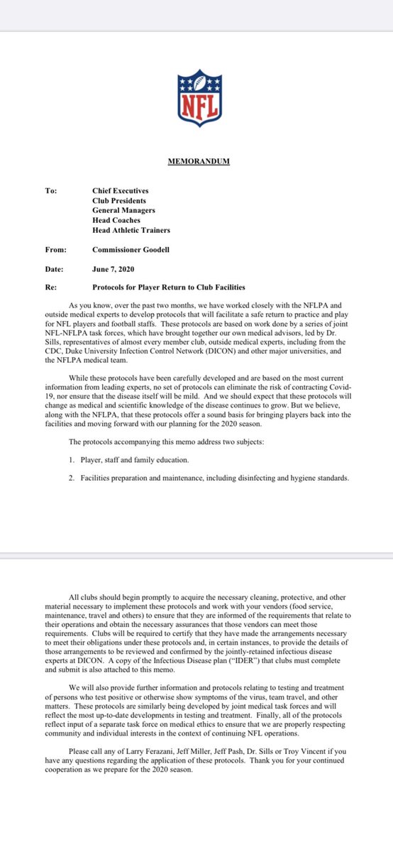 Nfl Memo To Teams Details Protocols For Returning To Facilities For Training Camp Newsday