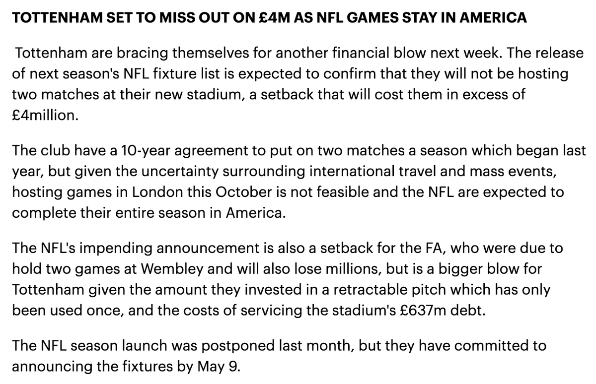 The Financial Windfall Spurs Get From Each Game Of The Nfl Deal At The Tottenham Hotspur Stadium Football London