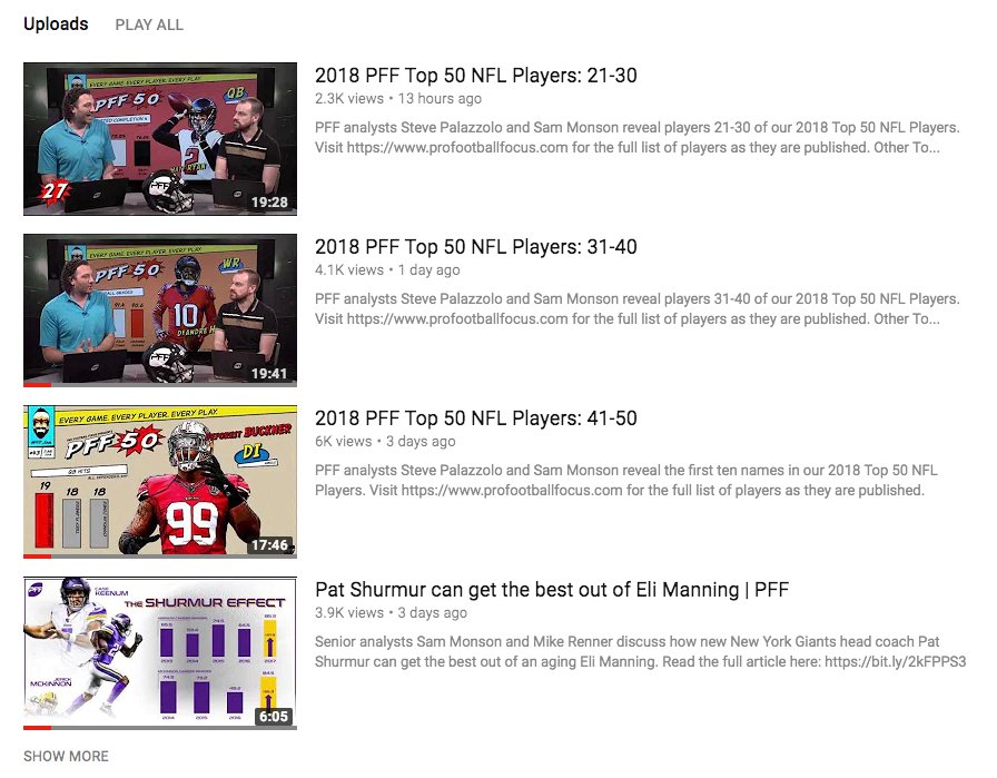 Pff On Twitter The Latest Videos Up On The Pff Youtube Channel Including Our Look At The Secret Superstars Around The Nfl On The Offensive Side Of The Ball Https T Co Usejkjywpb Https T Co Nxlzsdox8z