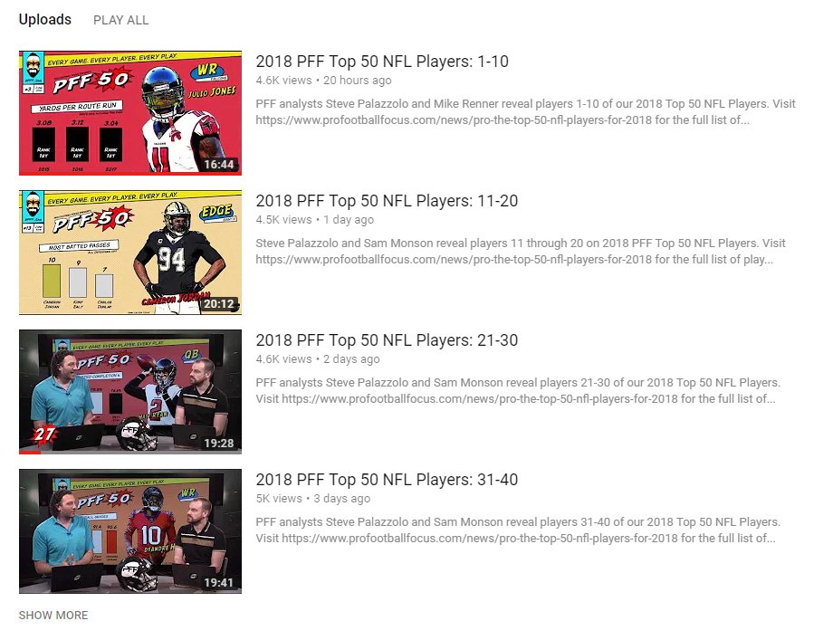Pff On Twitter Relive Our Countdown Of The Top Players In The Nfl With The Pff50 On Our Youtube Channel Https T Co Yryo2thbpf
