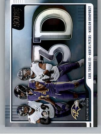 Amazon Com 2020 Score Football 3d 5 Earl Thomas Iii Marcus Peters Marlon Humphrey Baltimore Ravens Official Nfl Trading Card Made By Panini America Collectibles Fine Art