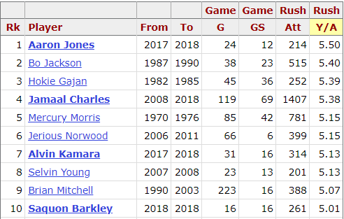 Joe Kipp On Twitter Here S Your Top 10 Leaders In Nfl History Post Merger Since 1970 For Career Yards Per Carry Average Min 200 Carries Aaron Jones At No 1 With 5 5 Ypc