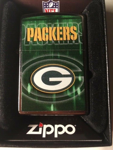 Vintage Nfl Football Green Bay Packers Zippo Pocket Lighter Unused In Box Minty