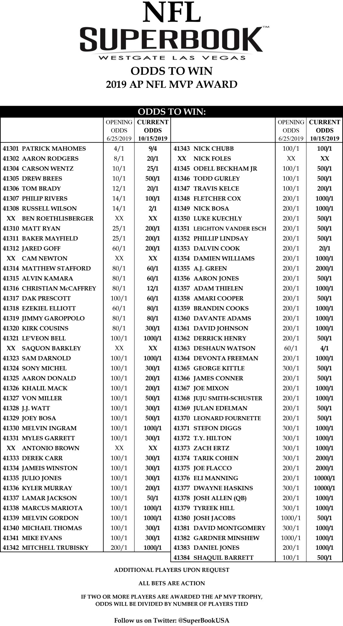 Gamingtoday On Twitter Odds To Win Nfl Mvp And Division Superbookusa Located In Westgatevegas Which Reopens June 18th Latest News Notes At Https T Co Imjfixbw4b Https T Co Tlgnnuaafs