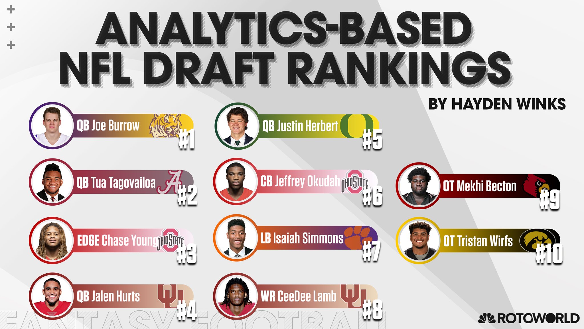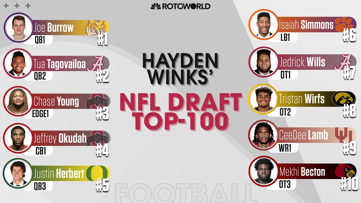 Rotoworld On Twitter Haydenwinks Unveils His Top 100 Overall Nfl Draft Prospects And Offers Some Insight Into His Selection Process See His Full Rankings Https T Co Frxbblw50q Https T Co Noplodalah