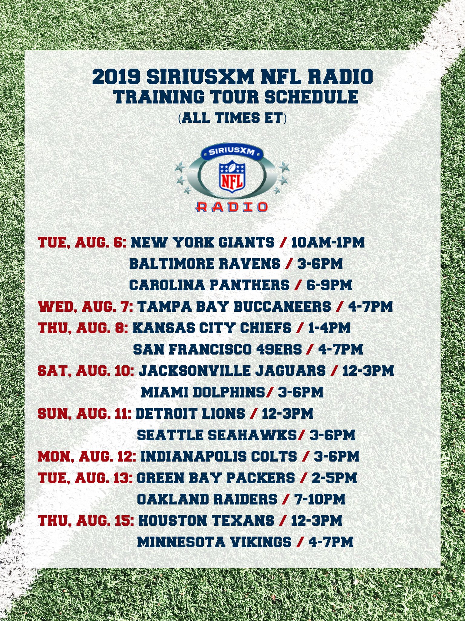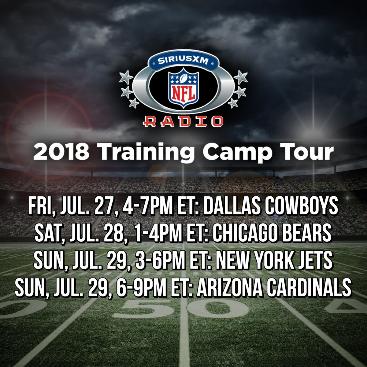 Siriusxm Nfl Radio On Twitter The 14th Annual Siriusxm Nfl Radio Training Camp Tour Kicks Off Tomorrow 7 27 With The Dallascowboys Here S A List Of The First 8 Stops Football Is Back